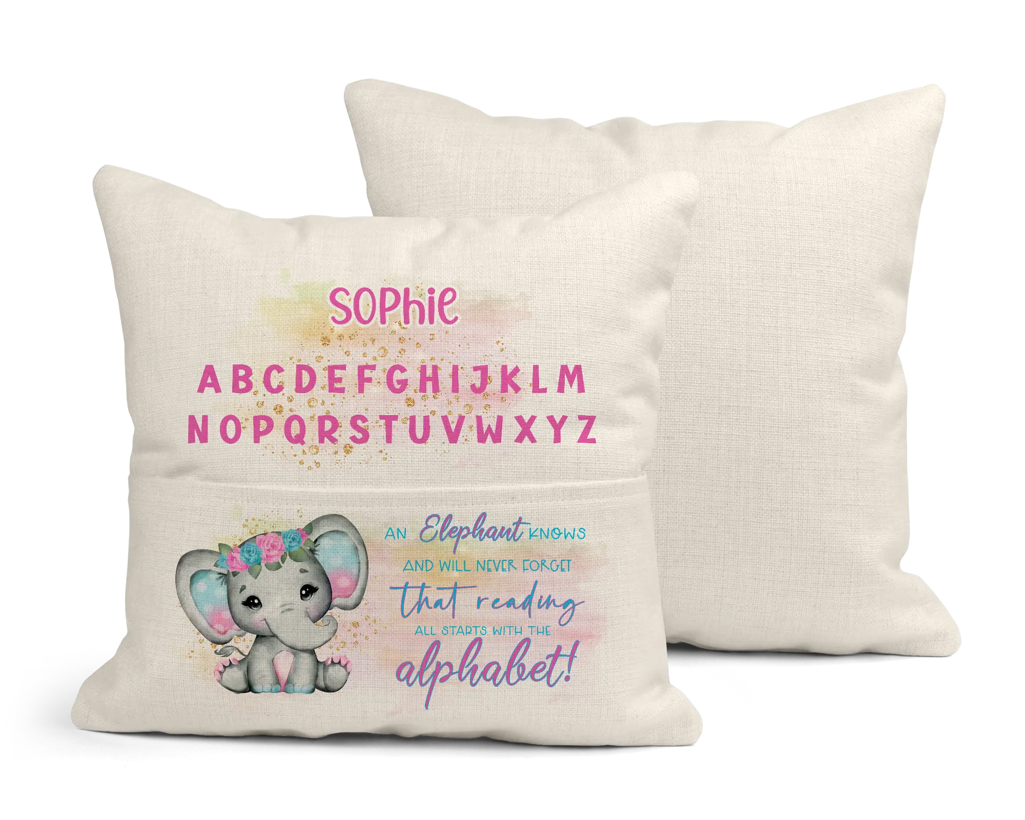 Linen Reading Cushion cover & insert 40 x 40cm Alphabet